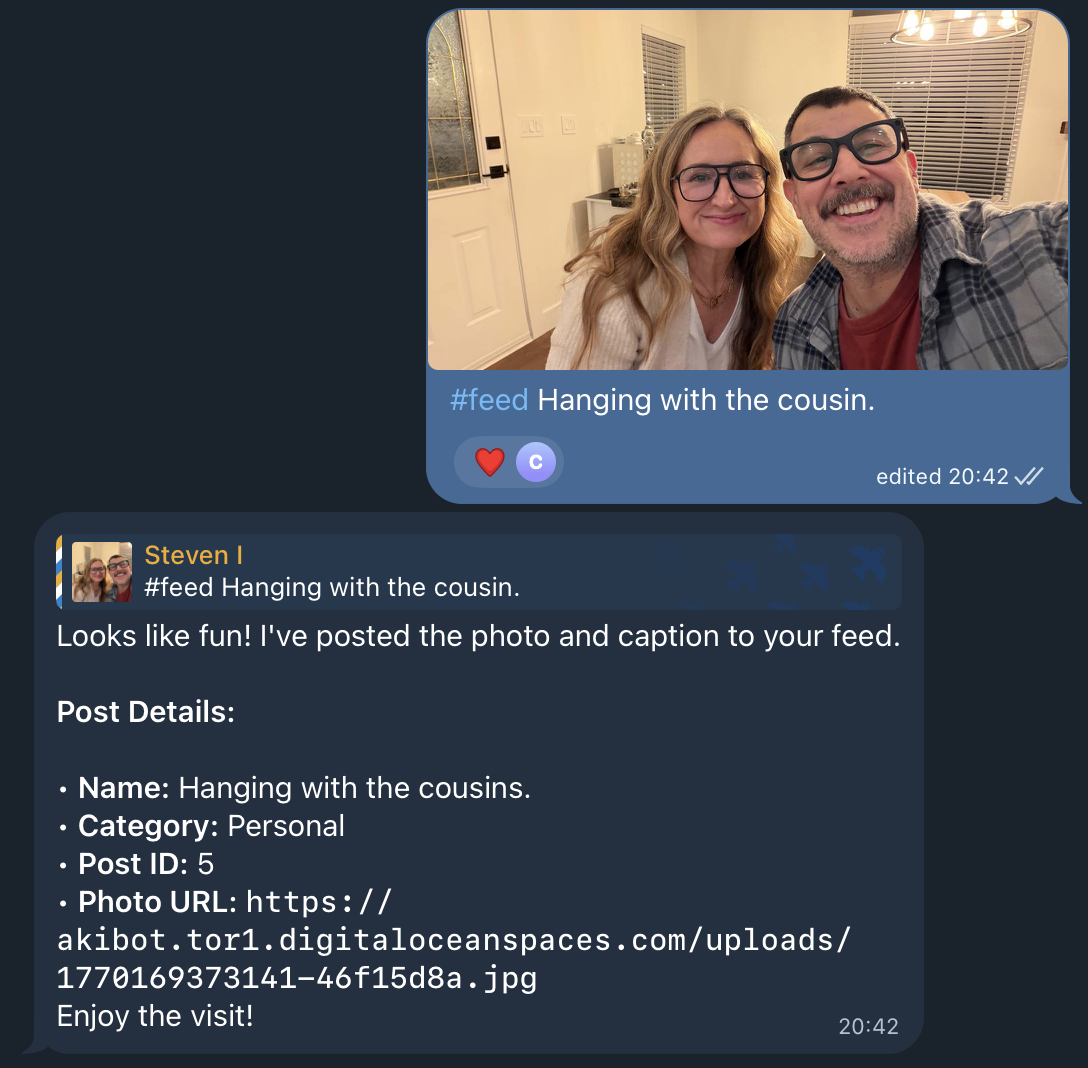I can now post to my web site directly from Telegram. Easy. Fast. Efficient and with very little effort. I have made my own personal Instagram feed with no ads! I'm also going to start posting photos that come up on my phone as a daily photo (when not traveling) so that I can share memories and moments and my years and years of photos don't go to waste.